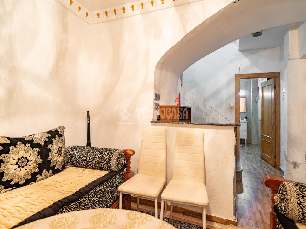 Con una distribución en tres plantas, este inmueble de 56 m² construidos ofrece espacios bien aprovechados. En la planta baja, un amplio salón invita a disfrutar de momentos en familia, acompañado de un baño completo con plato de ducha y un práctico almacén bajo la escalera.